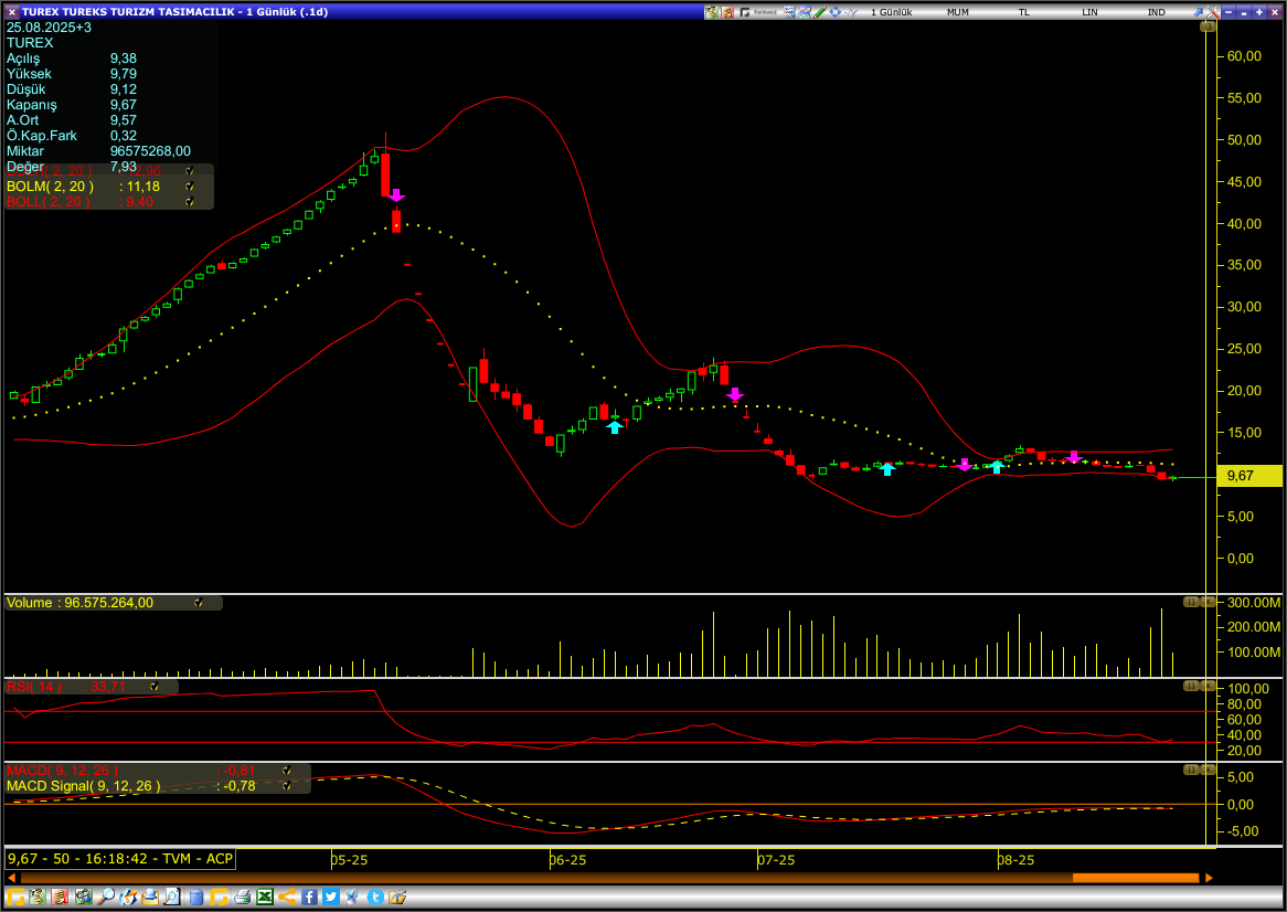 Tureks Turizm (TUREX) hisseleri Mart'tan Mayıs'a kadar giden süreçte 2 ay gibi kısa bir sürede yüzde 213 yükselerek 50,95 TL ile tarihi zirvesini gördü. Ancak zirve sonrası patron satışları ve MSCI endeksinden çıkarılma kararıyla hisse yüzde 81 değer kaybederek 9,64 TL’ye kadar geriledi.
