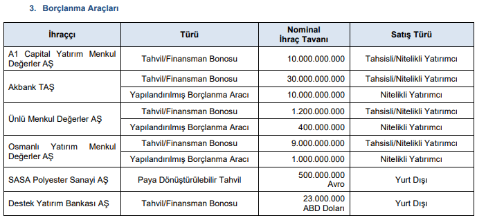 SPK’nın borçlanma aracı ihracını onayladığı şirketler: