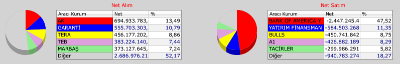 Öte yandan endekste net satıcı tarafta ise sırasıyla BofA, Yatırım Finansman ve Bulls Yatırım yer aldı.