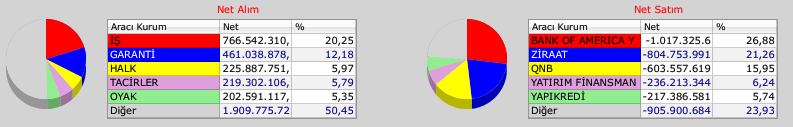 Öte yandan endekste net satıcı tarafta ise sırasıyla BofA, Ziraat Yatırım ve QNB Invest yer aldı.