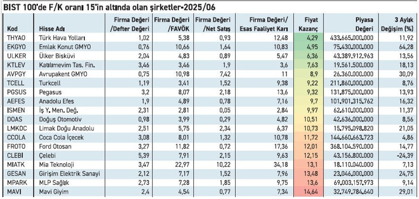 BIST 100’de F/K oranı 15’in altında olan şirketler