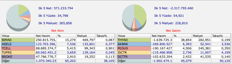 ABD'li yatırım bankası Bank of America'nın Borsa İstanbul'da bugün hacim bazlı alım ve satım yaptığı hisseler ise şu şekilde sıralandı: