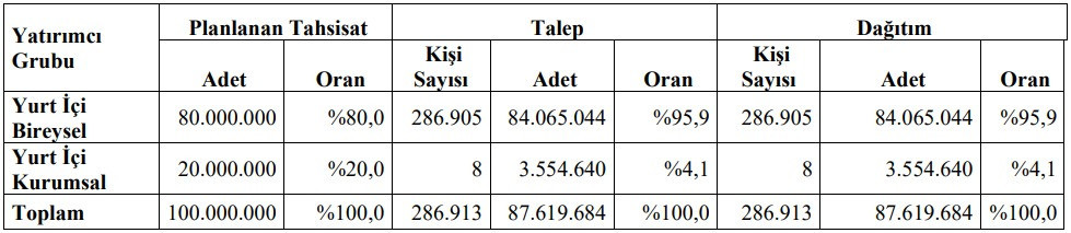 Halka arza katılan yatırımcı grupları arasındaki tahsisat oranları şu şekilde gerçekleşti: