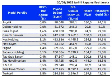 Güncellenen model portföyde Koç Holding dışında şu şirketler yer alıyor: