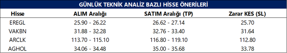 Günlük hisse önerilerinde 4 hisse öne çıktı: EREGL, VAKBN, ARCLK, AGHOL