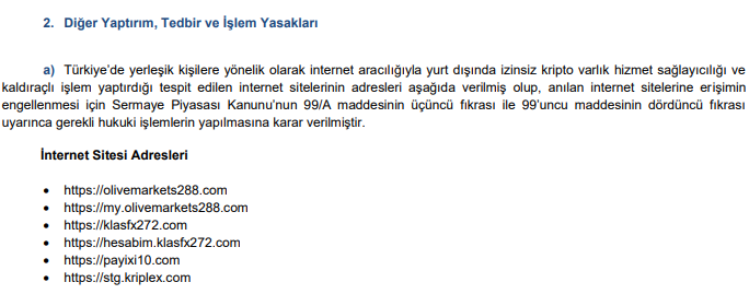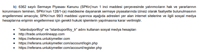 Abone olSermaye Piyasası Kurulu’nun (SPK) bu akşam yayımladığı bültende, internet aracılığı ile yurt dışında kaldıraçlı işlem yaptırıldığı belirlenen 11 siteye erişim engeli getirilmesi için hukuki işlemlerin yapılmasına karar verdi.
