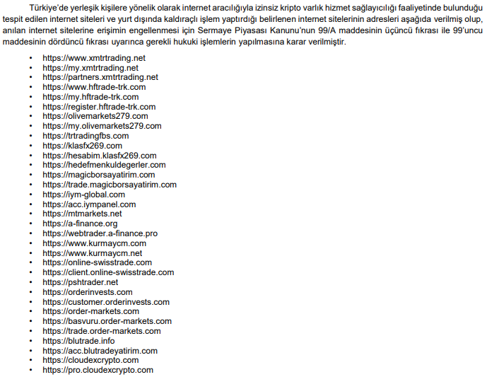 SPK’dan 33 internet sitesine erişim engeli kararı