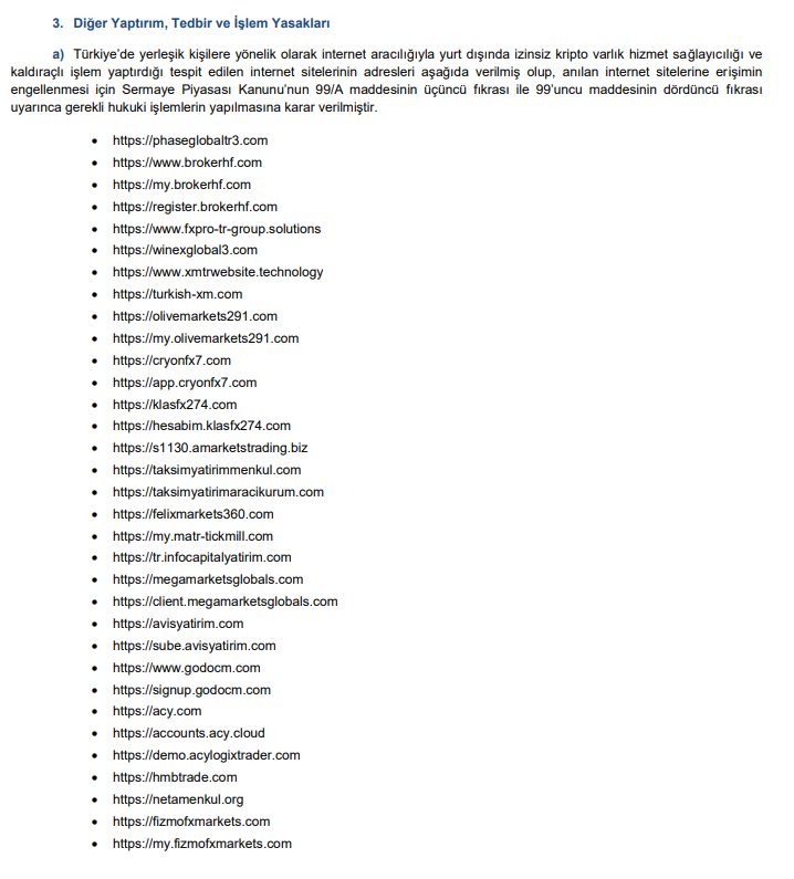 Abone olSermaye Piyasası Kurulu’nun (SPK) bu akşam yayımladığı bültende, internet aracılığı ile yurt dışında kaldıraçlı işlem yaptırıldığı belirlenen 33 siteye erişim engeli getirilmesi için hukuki işlemlerin yapılmasına karar verdi.