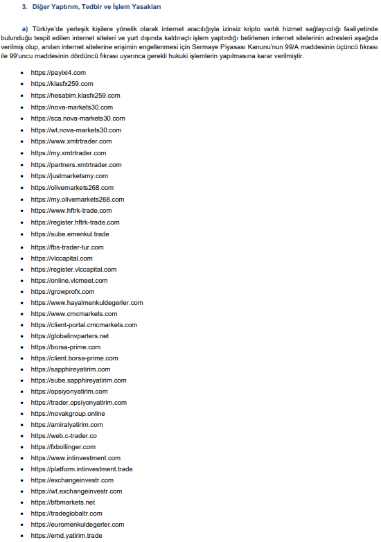 Abone olSermaye Piyasası Kurulu’nun (SPK) bu akşam yayımladığı bültende, internet aracılığı ile yurt dışında kaldıraçlı işlem yaptırıldığı belirlenen 46 siteye erişim engeli getirilmesi için hukuki işlemlerin yapılmasına karar verdi.