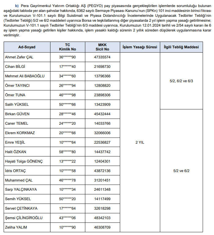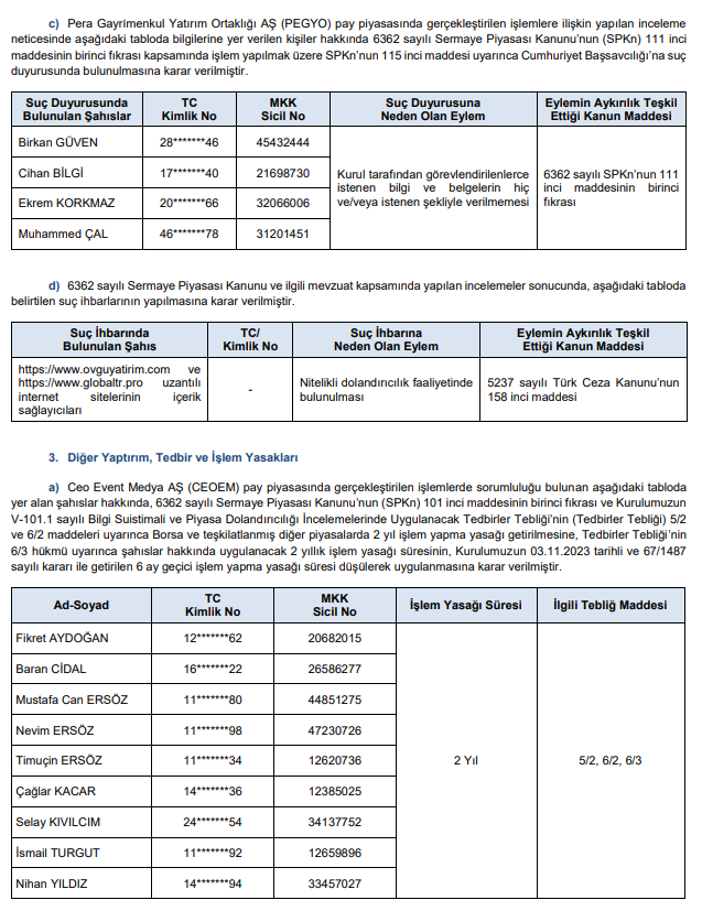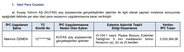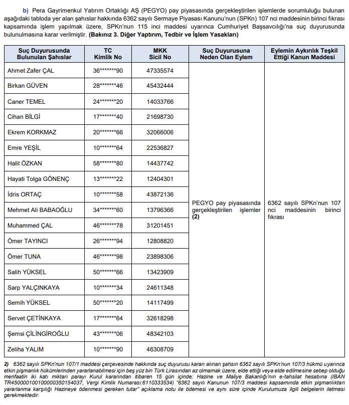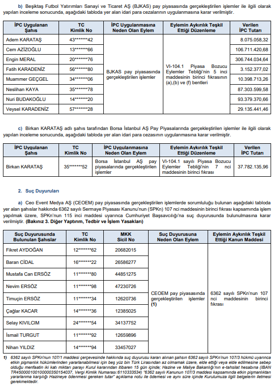 Abone olSermaye Piyasası Kurulu’nun (SPK) bu akşam yayımladığı bültendeki suç duyurusu ve para cezaları;