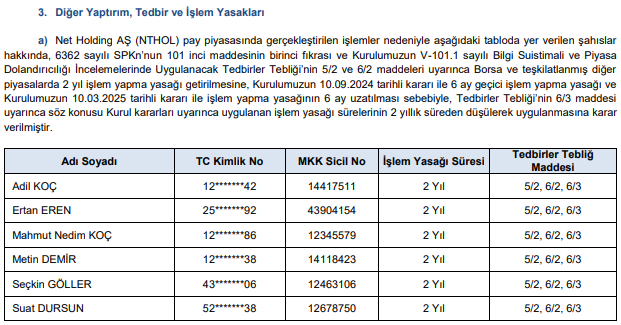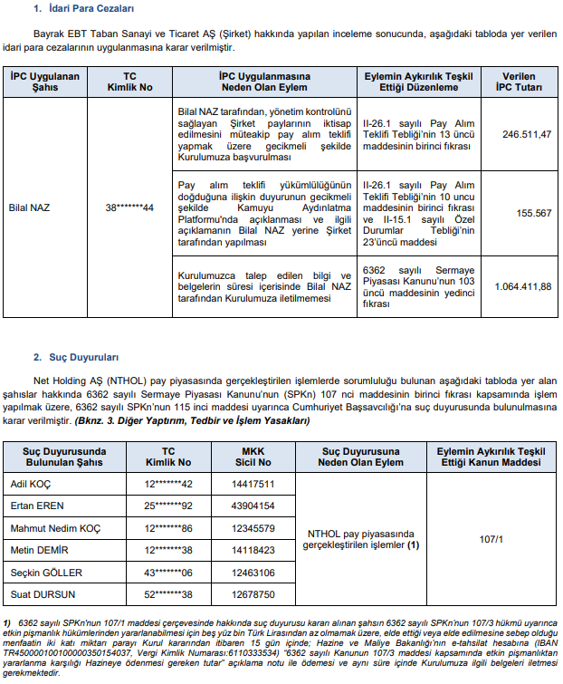 Abone olSermaye Piyasası Kurulu’nun (SPK) bu akşam yayımladığı bültendeki suç duyurusu ve para cezaları;