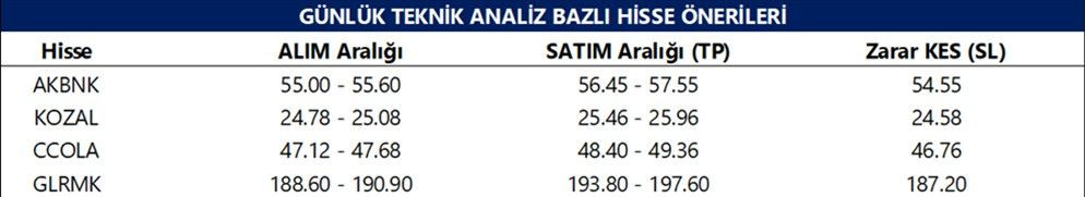 Teknik analiz bazlı hisse önerileri: AKBNK, KOZAL, CCOLA, GLRMK