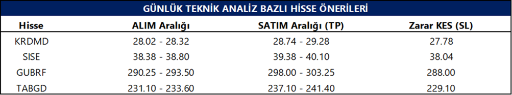 Teknik analiz bazlı hisse önerileri: KRDMD, SISE, GUBRF, TABGD