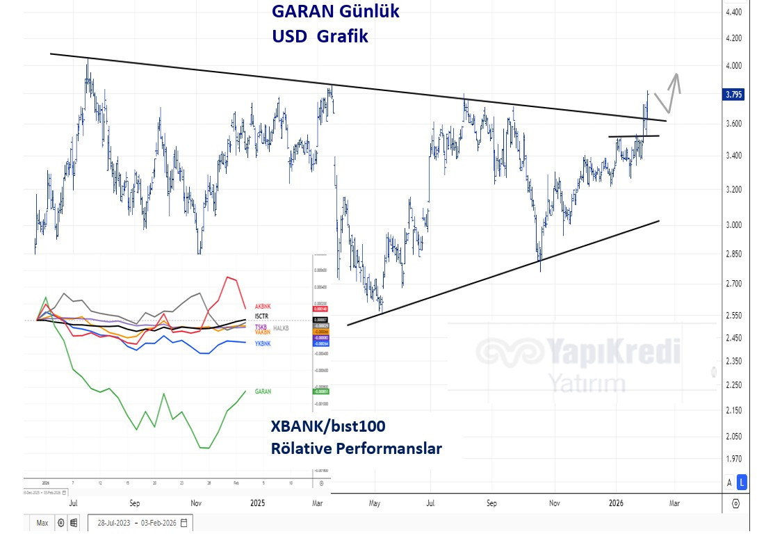 Yapı Kredi Yatırım, Garanti BBVA (GARAN) hissesi için teknik görünümün güçlendiğine dikkat çekerek “AL” önerisini paylaştı. Analizde, hissede yukarı yönlü momentumun devam edebileceği vurgulandı.